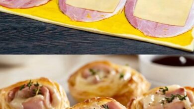 Ingredients Puff Pastry: 1 sheet (about 250 g), thawed Ham: 150 g (6 slices), thinly sliced Cheese: 1 cup (100…