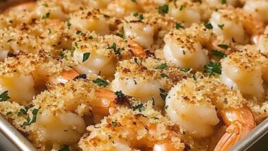 Ingredients: 1 pound large shrimp, peeled and deveined 2 tablespoons olive oil 4 cloves garlic, minced 1/4 cup grated Parmesan…