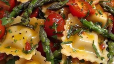Ravioli with Tomatoes, Asparagus, Garlic, and Herbs