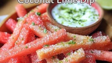 Ingredients: 1 watermelon, rind removed and cut into long fry-like shapes 2 teaspoons Tajin Classic Seasoning For the Dip: 1…