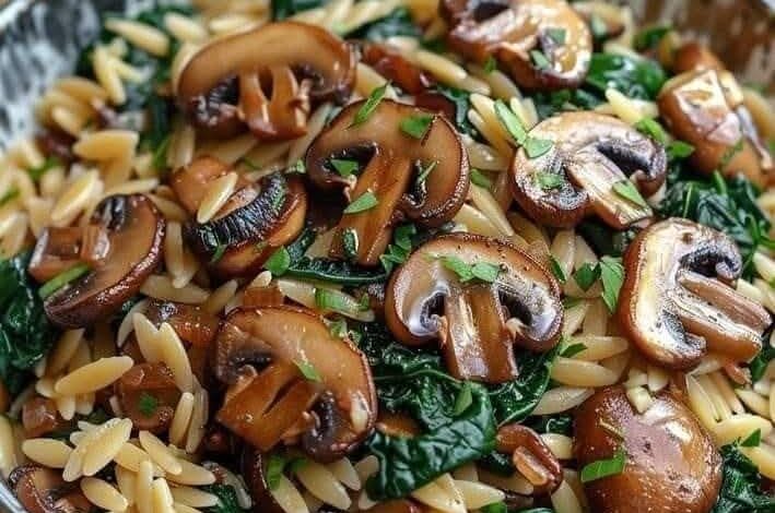 Here’s a simple recipe for Spinach Mushroom Orzo
